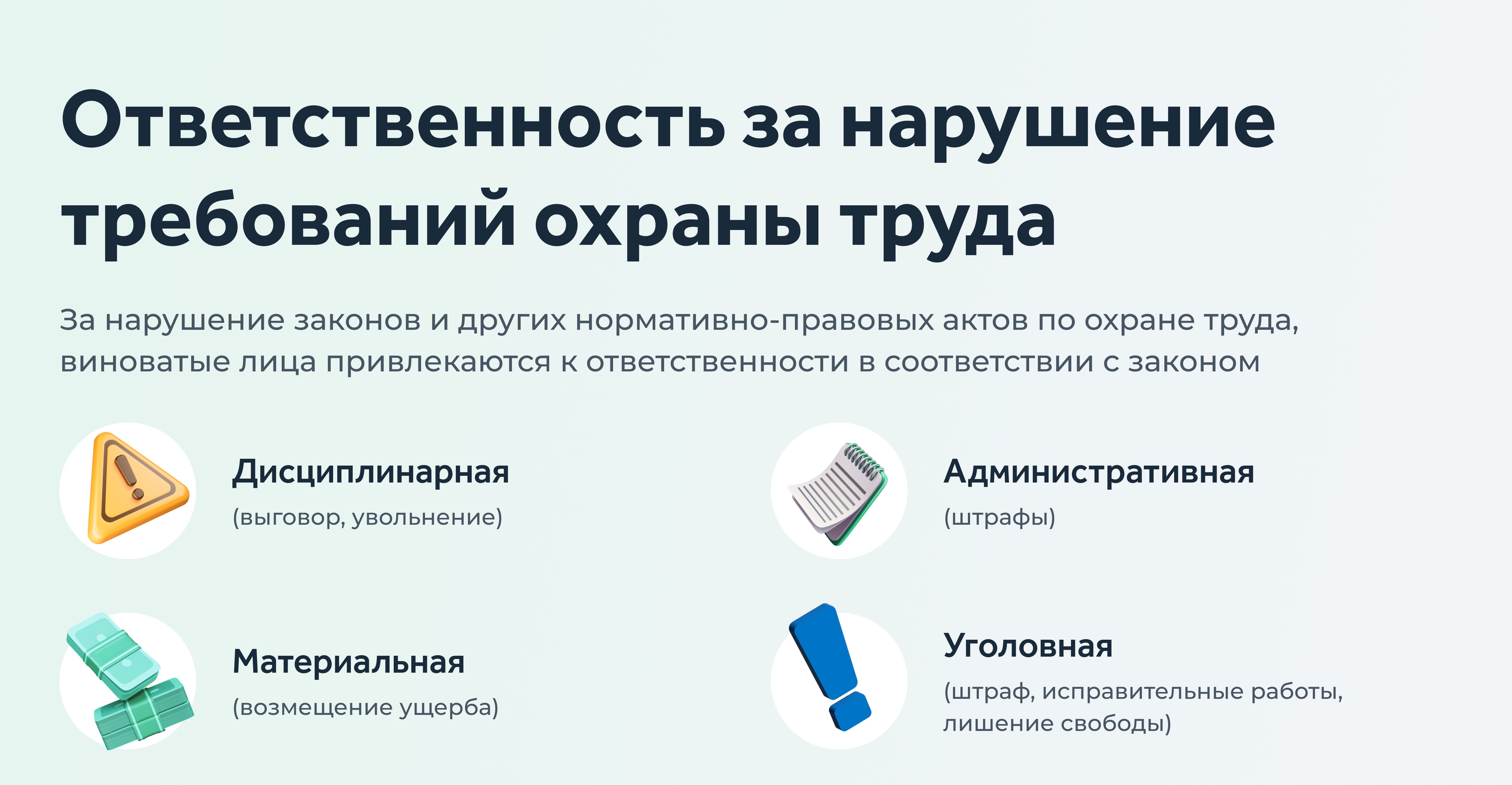 Нарушение требований охраны труда может привести не только к материальным потерям, но и к серьезным юридическим и репутационным последствиям. Современное общество предъявляет все более высокие требования к вопросам безопасности и здоровья работников, и любое пренебрежение этими нормами способно вызвать общественный резонанс, судебные разбирательства и значительные финансовые убытки.
