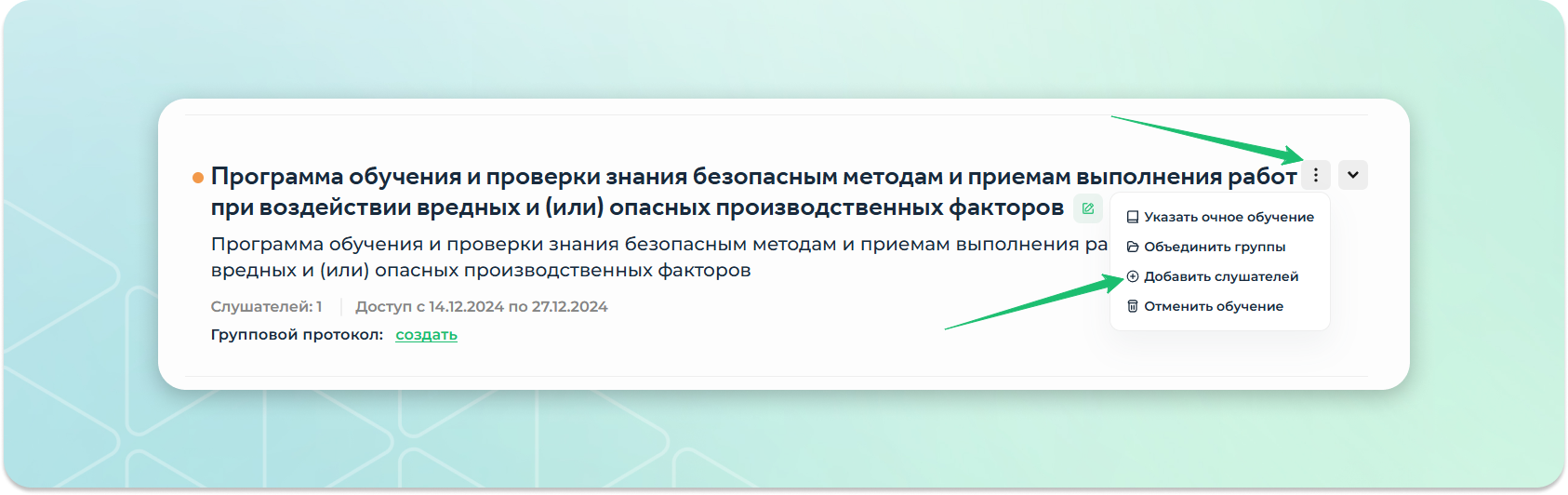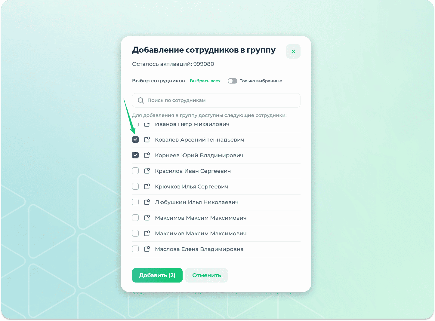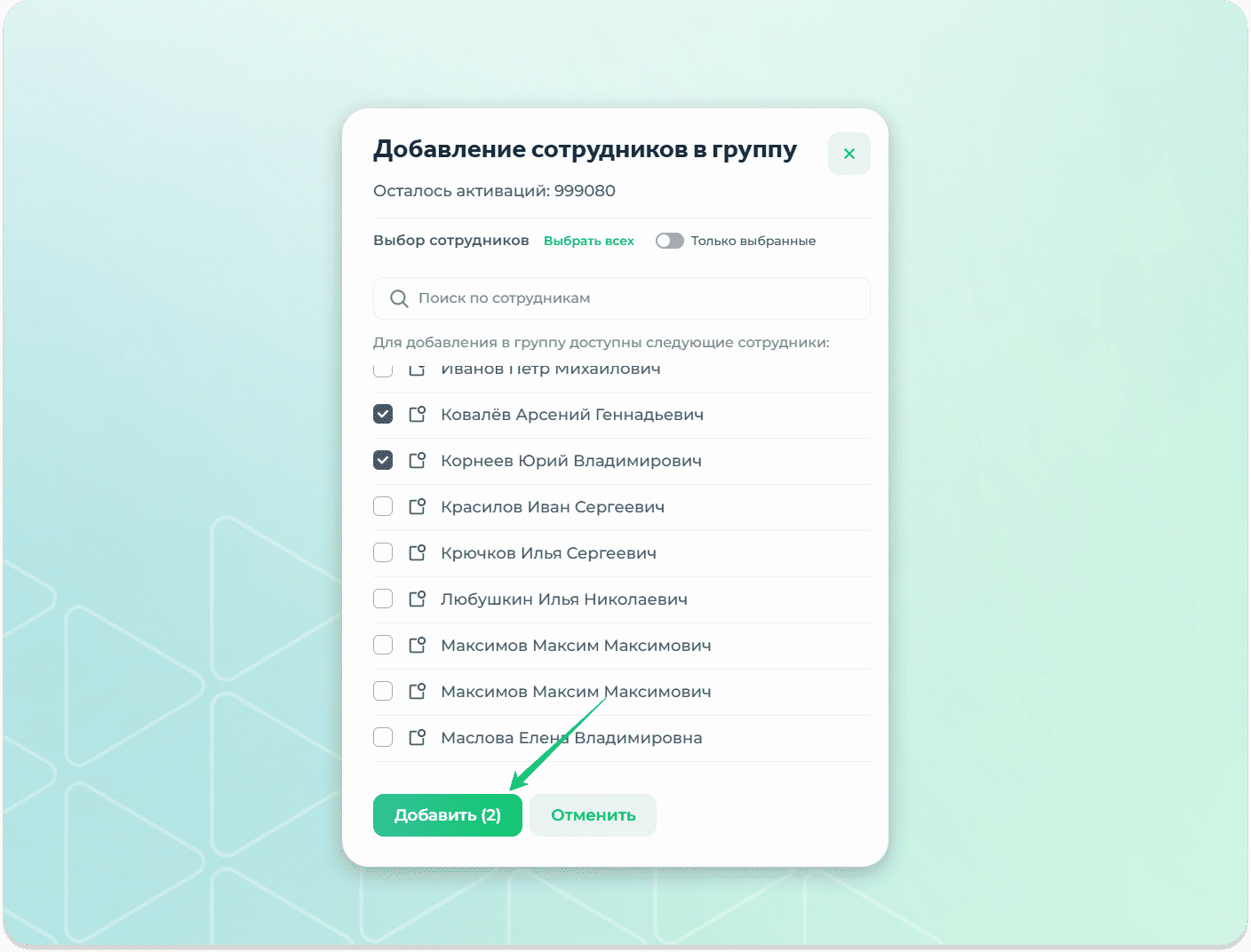 После этого выбранные сотрудники будут добавлены в группу обучения. Если у сотрудников была указана почта, то информация будет направлена на их почты.