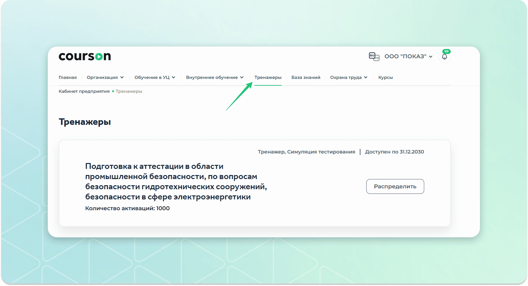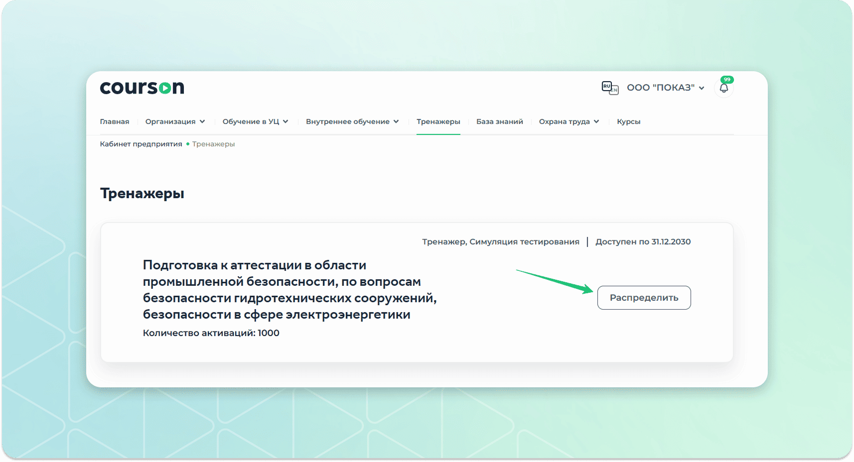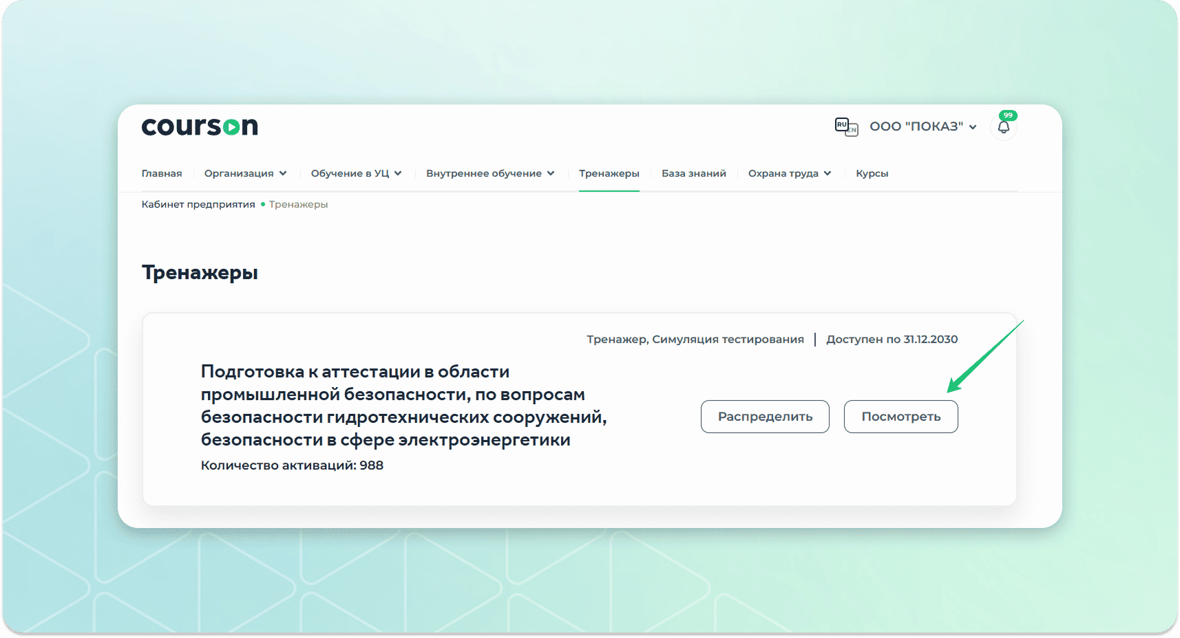 Как назначить тренажер по промышленной безопасности