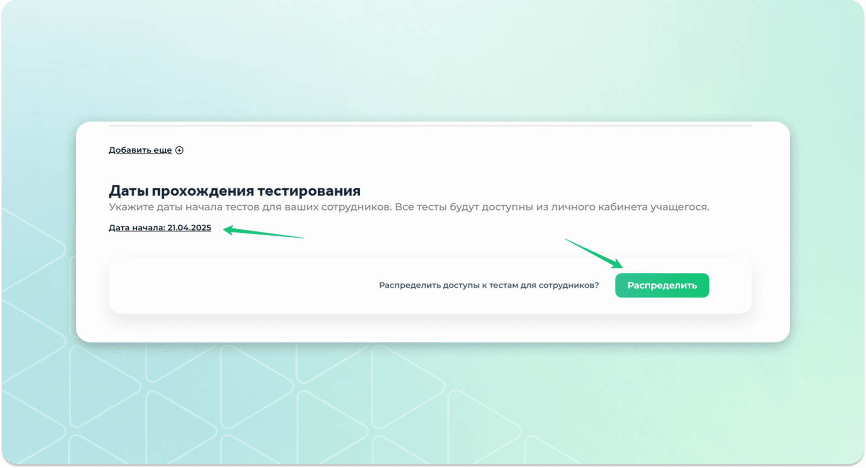Указать дату начала тренажера и нажать на кнопку "Распределить".