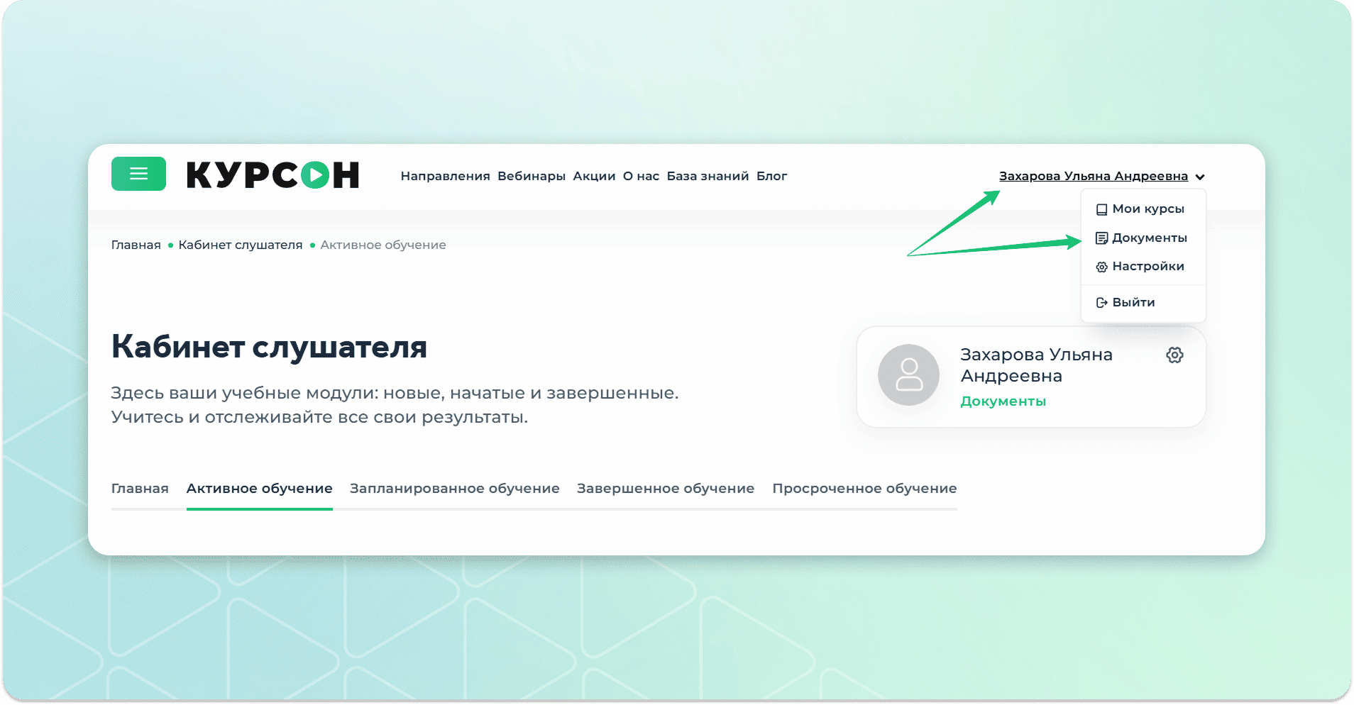 Перейти в кабинет слушателя.