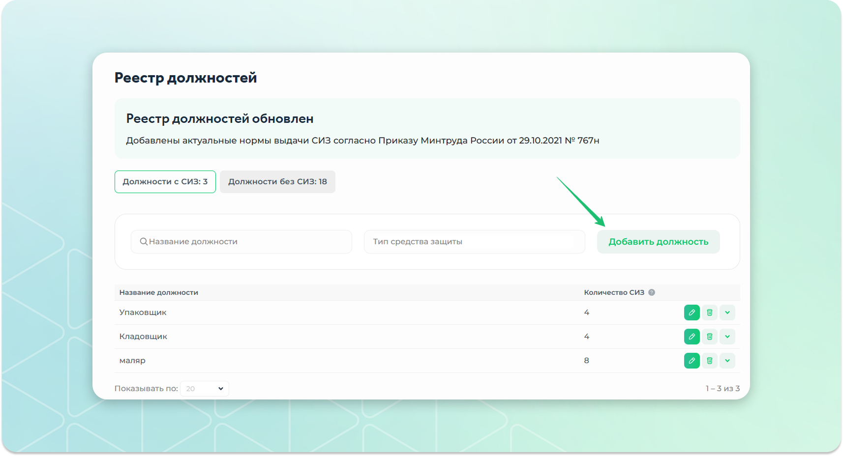 Если при добавлении сотрудника была указана должность, то она отобразится в реестре должностей.