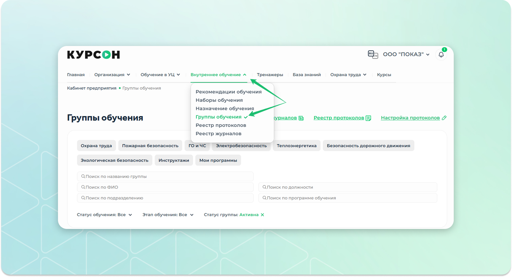 Архивные группы можно найти выбрав статус группы "в архиве".