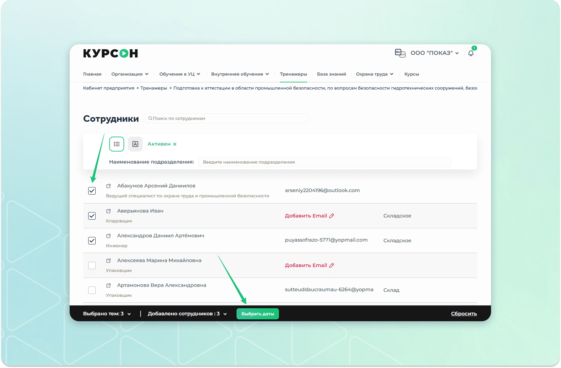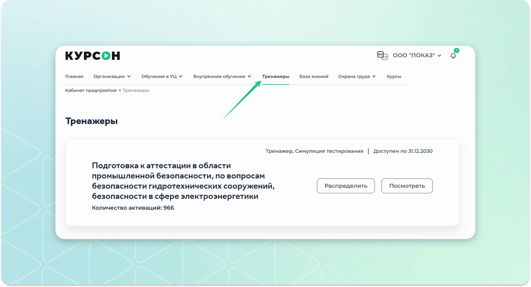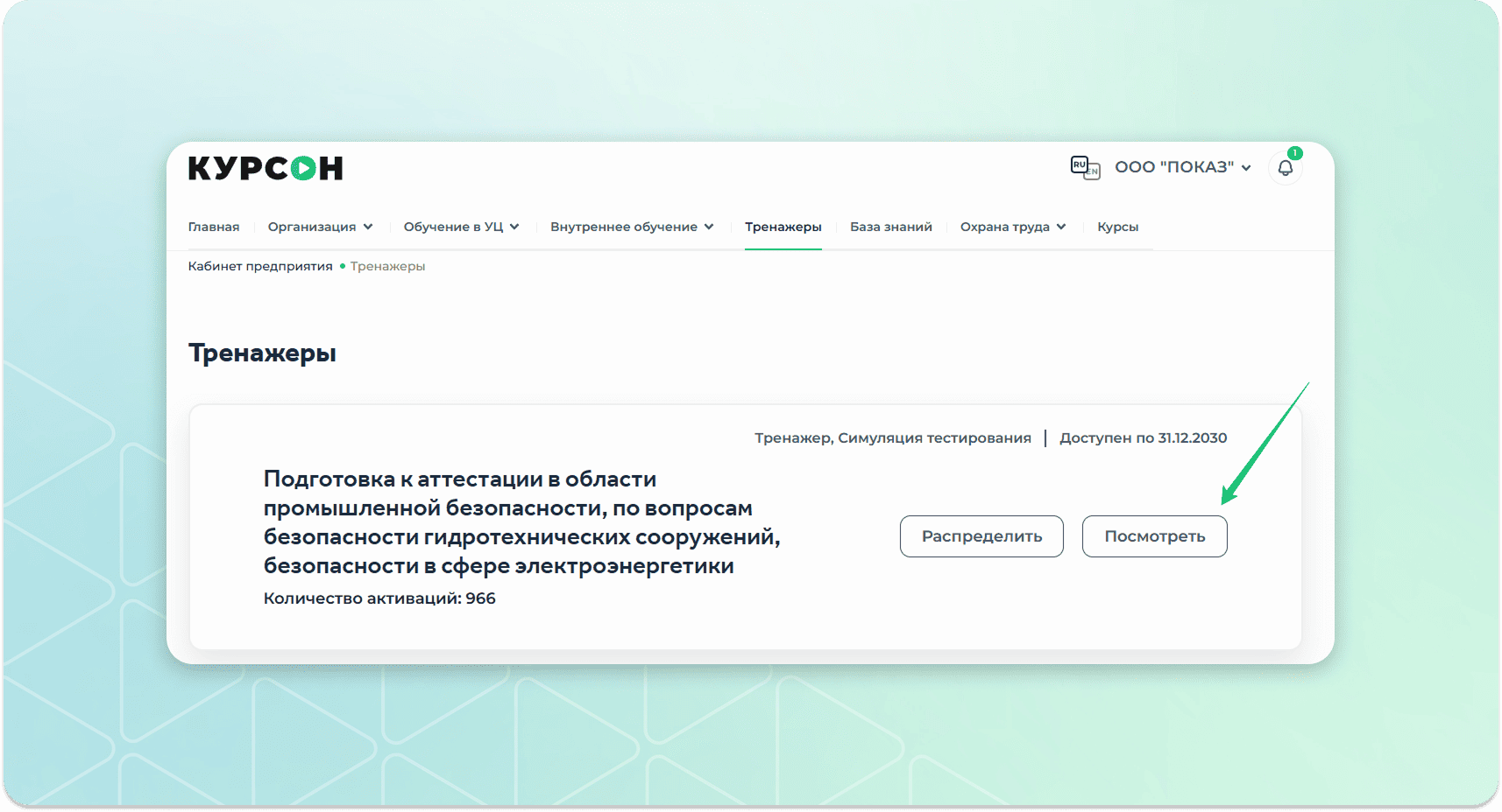 Как назначить тренажер по промышленной безопасности