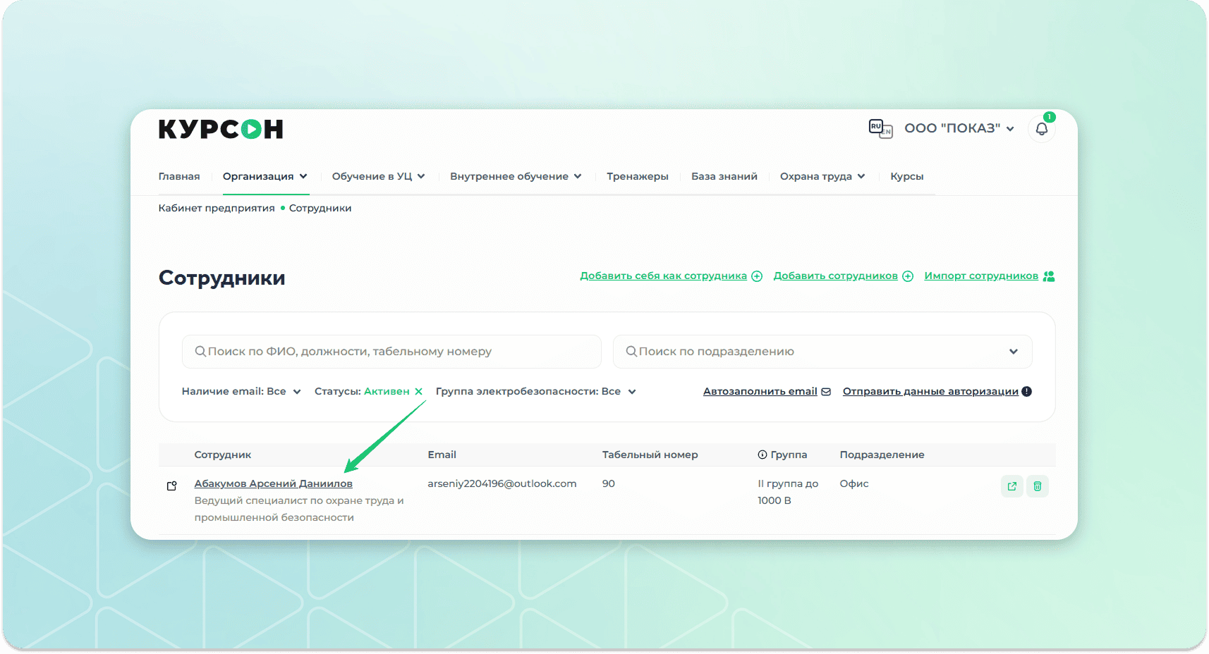 Перейти в раздел “Сотрудники”
