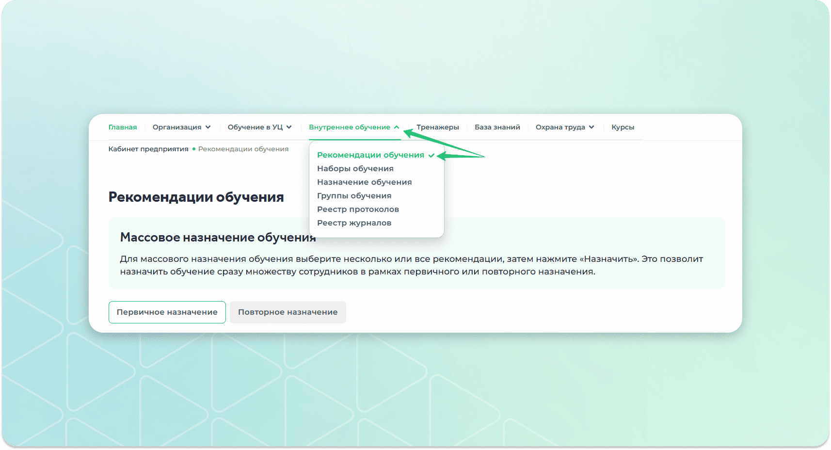 Как назначить обучение через "Рекомендации обучения"