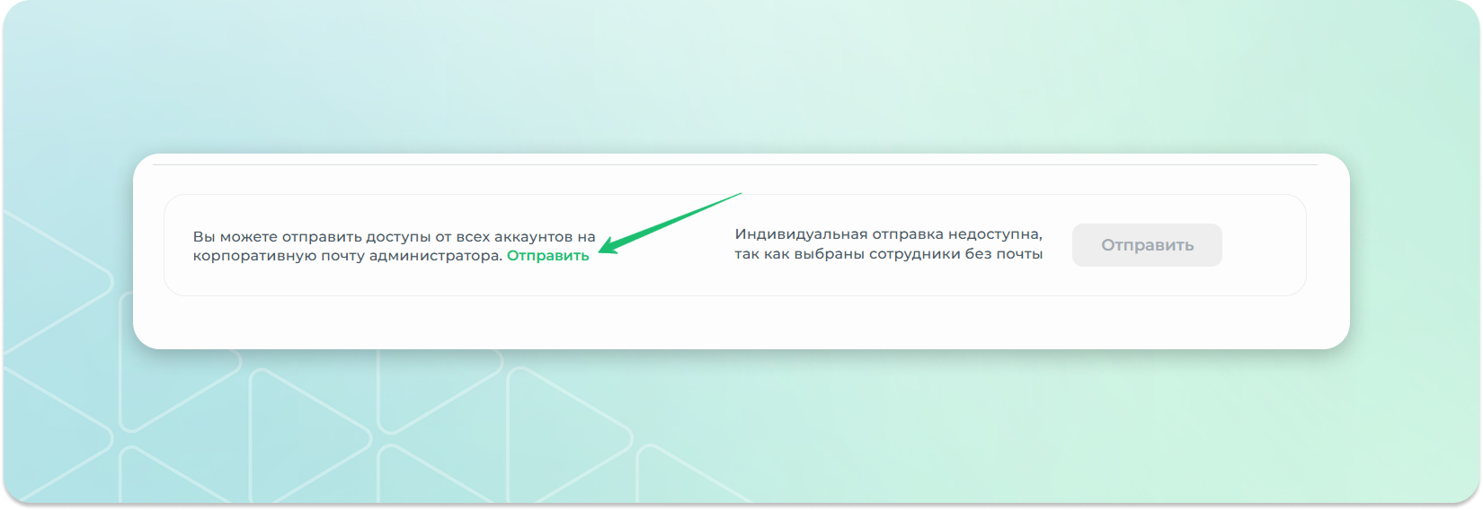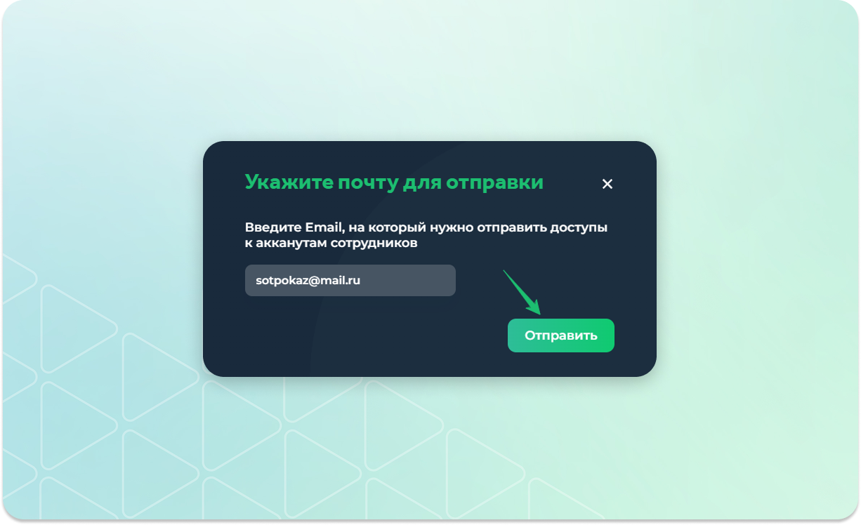 Указать адрес электронной почты, на который нужно отправить доступы по выбранным сотрудникам, и нажать на кнопку "Отправить"