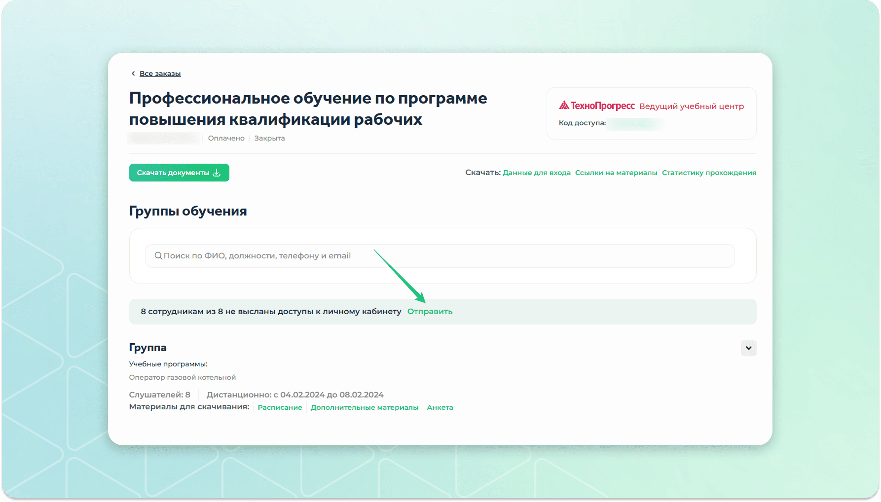 Как отправить доступы к обучению в учебном центре на одну почту