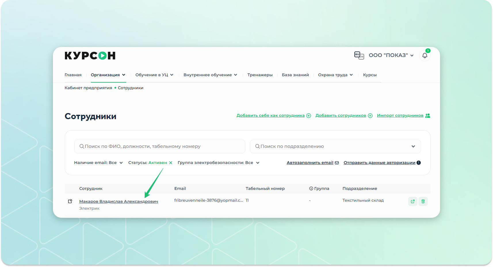 Перейти в раздел "Сотрудники".