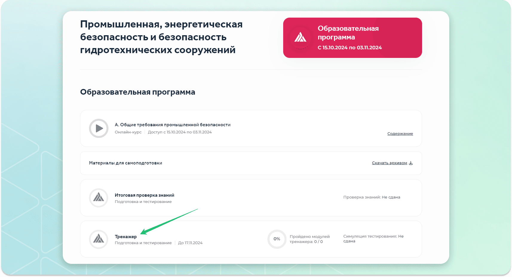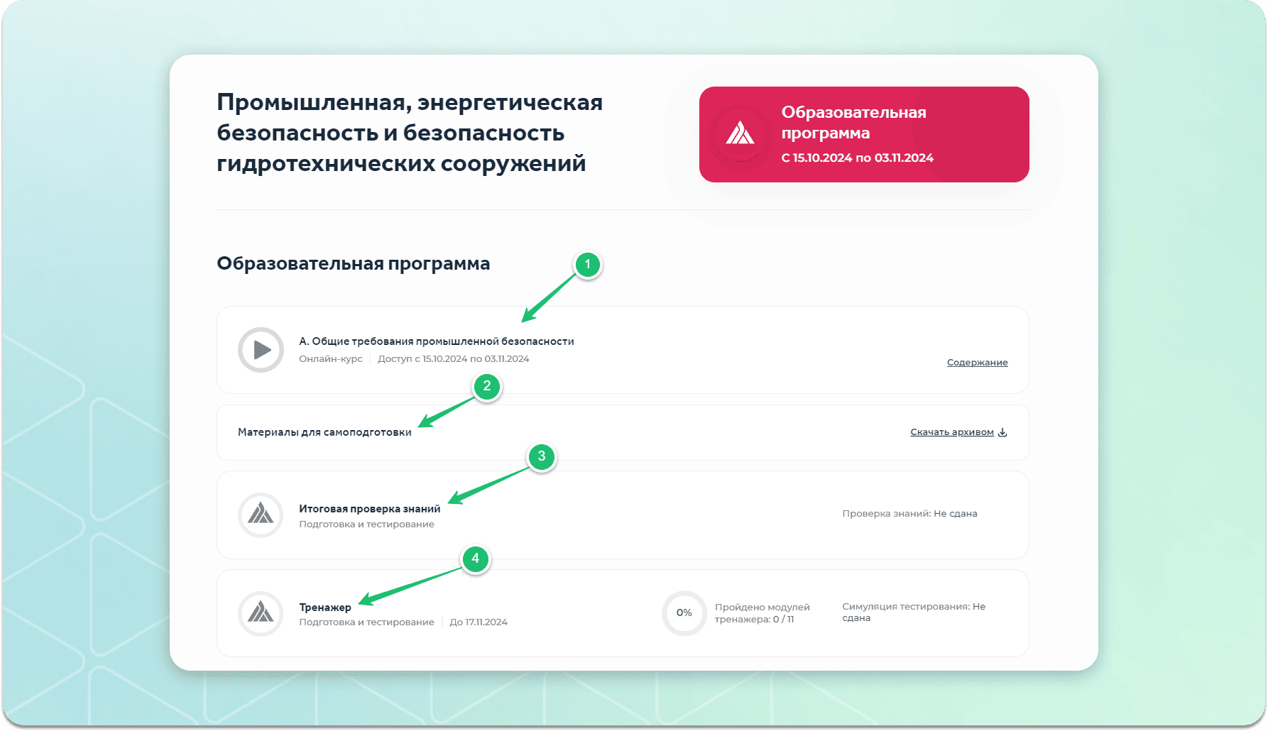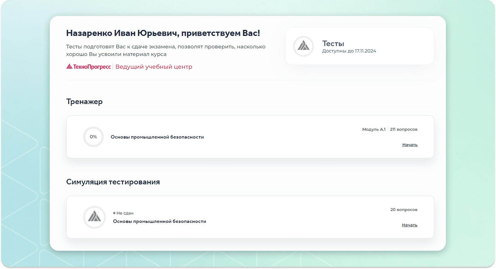 Инструкция по работе с программой обучения по промышленной безопасности (модуль А1)