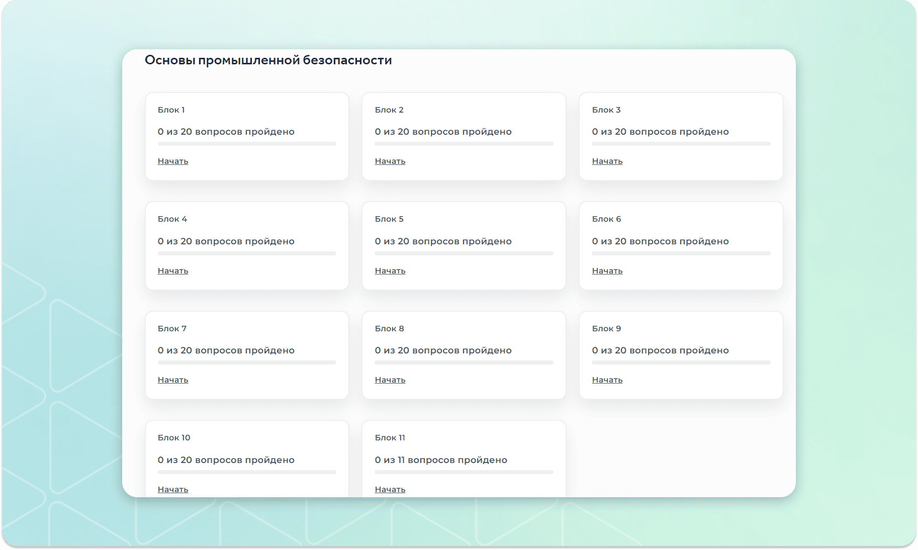 В основном тренажере собраны все вопросы. Они разбиты по блокам для вашего удобства.