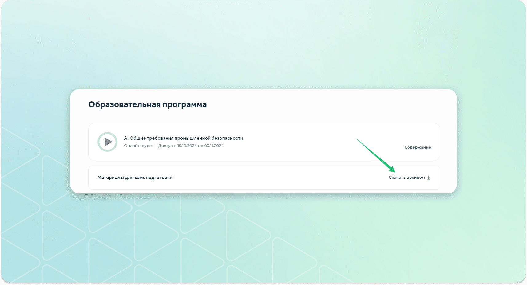 В материалах для самоподготовки находится нормативная документация. Чтобы скачать материалы, нужно нажать на кнопку "Скачать архивом".